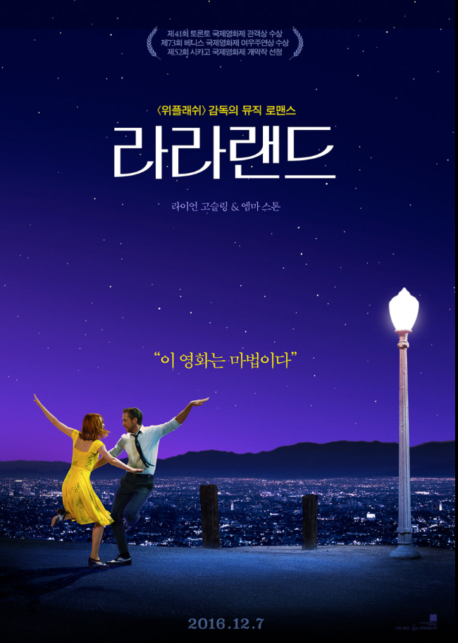격렬한 열정, 황홀한 사랑, 순수한 희망 이곳에서 모든 감정이 폭발한다. 음악과 춤 그리고 두 남녀, 상상만 해도 얼마나 아름다운 장면인지 생각이 든다. 모든 이들이 극찬한 영화 라라 랜드는 연출과 이야기를 덧대어 극찬을 이끌어냈다. 라이언 고슬링과 엠마 스톤 이들의 노력은 헛되지 않았다. 힐링이 되는 마법 같은 뮤직 로맨스 영화 시작은 꿈을 좇으며 살아가는 배우 지망생 미아가 고향을 떠나면서 시작된다. 꿈을 꾸는 사람들 위한 별들의 도시 라라 랜드 인생에서 가장 빛나던 순간 만난 두 사람은 서로의 무대를 만들기 시작한다. 힘든 일과를 마친 미아, 오디션을 보러 가지만 엉망이 된다. 그날 룸메이트 친구들은 미아에게 경력을 쌓는데 도움이 될 수 있다며 할리우드의 호화로운 파티에 미아를 데려간다. 파티 후 미아의 차는 견인당해서 집으로 걸어올 수밖에 없다. 세바스찬은 레스토랑에서 공연을 하고 크리스마스 곡만 연주하라는 레스토랑 주인의 경고에도 즉흥 재주 연주를 한다. 지나가다 그의 연주하는 걸 듣게 된 미아는 음악에 이끌려 레스토랑 안으로 들어간다. 그 와중 주인의 말을 무시하고 즉흥 연주를 한 세바스찬은 해고를 당해 밖으로 나가고, 미아는 그를 따라가 그의 연주를 칭찬을 하지만 세바스찬은 그녀를 무시한다. 몇 달 후 한 파티에서 팝 커버곡을 연주하는 세바스찬과 우연히 마주치며 공연이 끝난 후 차로 걸어가며 그들의 이런 밤을 낭비하는 것에 대한 신세 한탄을 한다. 미아는 자신의 연기에 대한 열정에 대해 말하며, 세바스찬은 자신의 재즈에 대한 열정과 자신만의 클럽을 열고 싶다는 욕망을 표현한다. 그 후 미아는 오디션에서도 떨어지고 세바스찬의 격려로 일인극 연극을 쓰기로 결심하며, 세바스찬은 재즈 클럽에서의 정기 공연을 하며 둘의 동거는 시작한다. 자신들만의 꿈만큼 달콤한 사랑을 이어가면서도 꿈을 위해서 노력하지만, 꿈에 다가갈수록 서로에게 멀어지고 꿈을 좇았던 이들이 서로 꿈을 선택 후 헤어지게 된다. 미아는 캐스팅 디렉터와 결혼하게 되며, 성공한 배우로 가정까지 이루고 행복한 삶을 살아간다. 그러던 어느 날 남편과 함께 무심코 재즈 바에 들어가고, 거기서 꿈을 이루고 연주하는 세바스찬과 눈이 마주치는데, 그 둘은 다시 마주치게 된 과거의 연인을 어떻게 바라보게 될까.